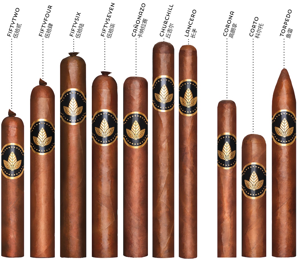 伍拾贰(Fiftytwo)、伍拾肆(Fiftyfour)、伍拾陆(Fiftysix)和伍拾柒(Fiftyseven)卷制后带“猪尾”茄帽,而卡纳拉赛(Cañonazo)、长矛(Lancero)和丘吉尔(Churchill)则采用经典茄帽。